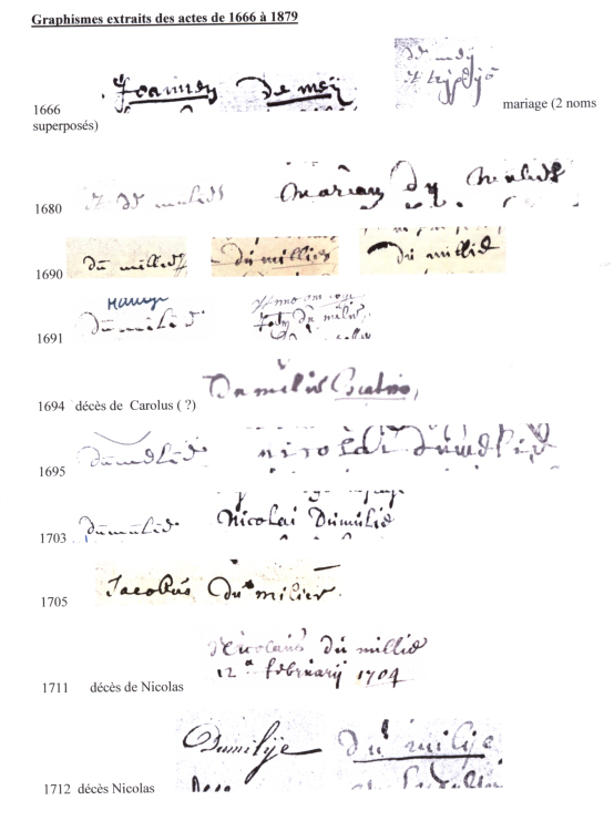 Pour résumer : de Mulié, de Mulier, dumylie,dumilÿe dumelie, dumélie, dumélié semblent être des versions du même nom.